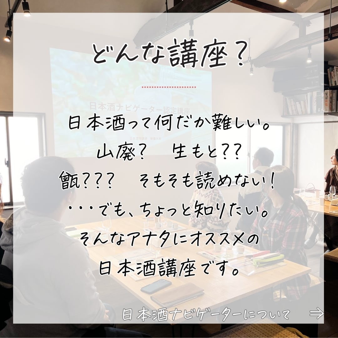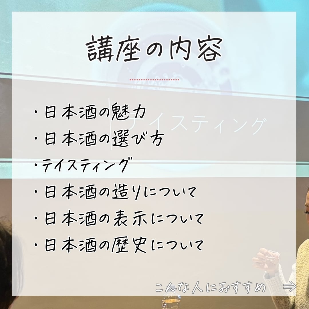美味しい飲み方や選び方、テイスティングなどを通じて「日本酒の魅力」に触れてゆきます。